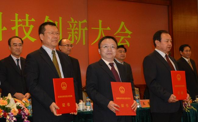 尊龙凯时-人生就是搏药业三项科技创新项目分别获得2010年科技进步奖,2011年科技进步奖和专利奖,副总裁马亚平代表公司出席会议,并上台领取了获奖证书。