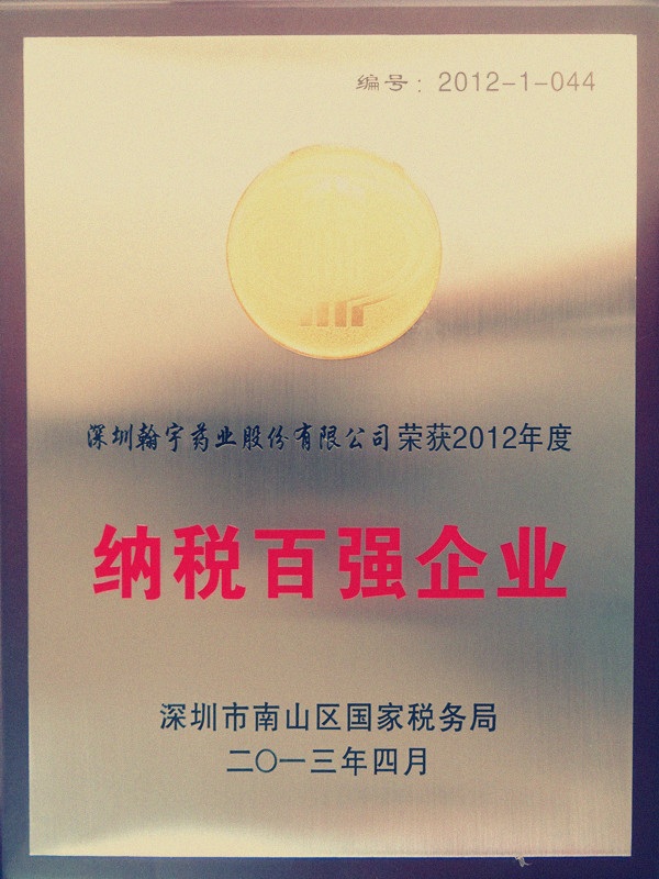 我公司荣获“南山区国税局2012年纳税百强企业”称号
