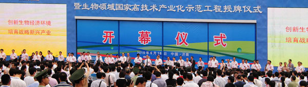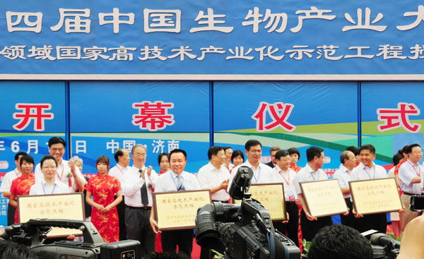 2010年6月18日-20日,第四届中国生物产业大会暨生物领域国家高技术产业化示范工程授牌大会在山东省济南市舜耕国际会展中心隆重举行。总裁助理费金海出席会议并代表公司上台接受国家发改委颁发的“国家高技术产业化示范工程”牌匾。