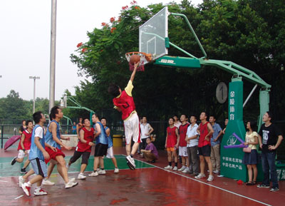 本届总决赛在高新区总裁俱乐部举行,篮球场上分外热闹,公司篮球爱好者都早早来到场边观看这场对决,公司领导也专程来到现场为两支球队加油鼓劲。开球之后,比赛在双方队员的激烈拼抢中如火如荼地进行着,积极奔跑、迅猛快攻、精准远投、美妙上篮、完美配合······一幅幅高潮迭起、扣人心弦的画面赢得观众们一阵阵激情喝彩和热情欢呼。夕阳下,红霞中,整个篮球场成为我们最闪耀的舞台。