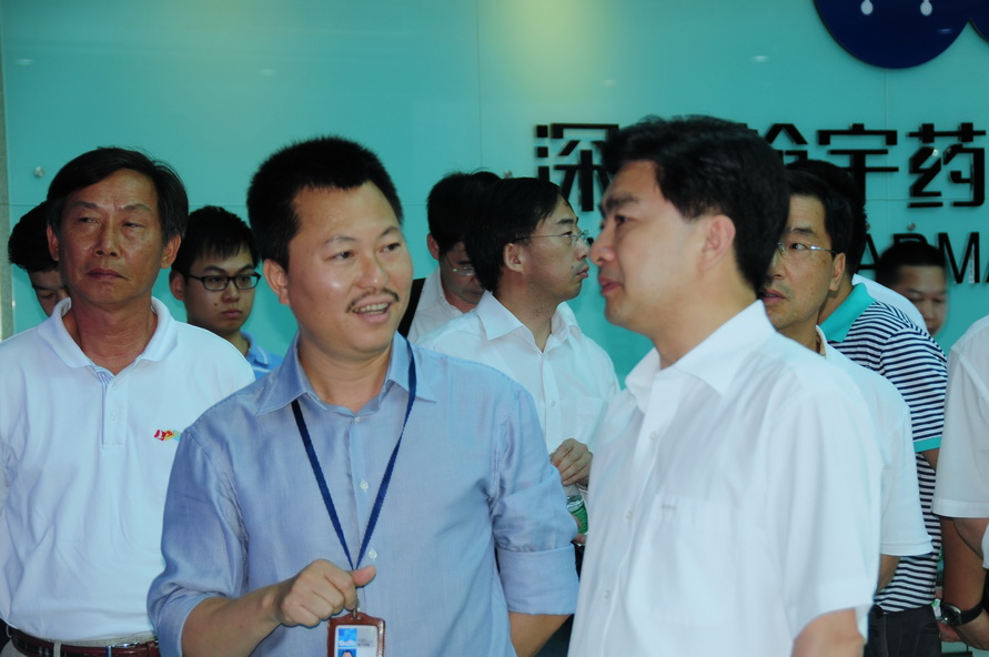 2011年6月20日下午,广东省委常委、深圳市委书记王荣,市委常委、秘书长王毅,副市长袁宝成,市财政委主任乔家华,南山区委书记叶民辉等一行到我公司调研。在公司董事长曾少贵、副董事长曾少强、的陪同下,参观了公司展示厅,考察了多肽药物研发中心和质检中心,全面了解尊龙凯时-人生就是搏药业在研发、生产、销售等方面的情况,为振兴深圳市生物产业发展掌握第一手材料。